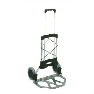 The 10-1/2-pound hand truck features durable metal hybrid construction and will support up to 200 pounds. The 7-inch rubber wheels, meanwhile, roll smoothly on virtually any surface, from pavement to trim carpet to linoleum. Best of all, the truck folds up compactly for storage or carrying, with a footprint of only 28.5 inches tall and 2.5 inches wide. The hand truck's narrow profile makes it ideal for carrying on planes (it fits easily in overhead compartments), trains, and cars, and when you're not using it, simply hang it on a peg in the garage or stow it next to the fridge.